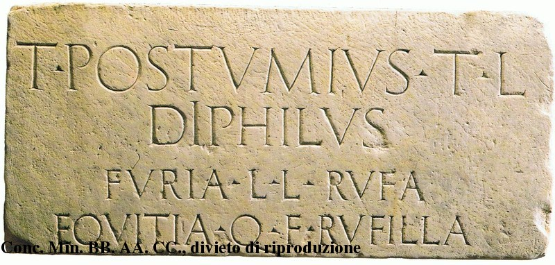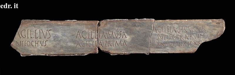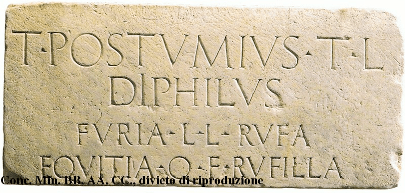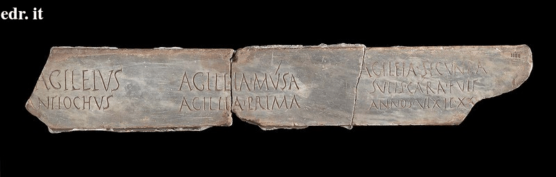 Stele bearing an inscription in Oscan (British Museum, London). Around 300 – 100 BCE. Found in the inner arch of the Nola Gate in Pompeii. Reads from right to left: “Vibius Popidius, son of Vibius, chief magistrate, was responsible for this work and approved it”. [Public domain image off Wikimedia]