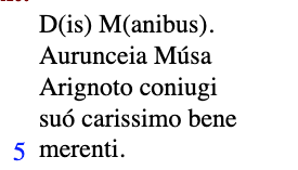 CIL 1.1009 is typically dated loosely to the age of Cicero and Augustus. It has an apex over the e in leti and the o of hora. CIL 1.1194 from Minturnae has a 18(!) in the six lines of verse (iambic trimeters) composed about one of freedwomen commemorated. Dating is again difficult. Some of the spellings, such as the use of ei in domineis and leiberate and veiginti might point to 1st cent. BCE.
