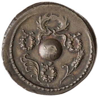 Stylized bow case or an actual aplustre? I don’t know. Is there any reason for naval symbolism on late Attalid coinage? I do think that many ancient viewers would see an apulstre before they saw a bow case. I’m not the first to think this. The BMC catalogue recorded the image as an aplustre, but the description has fallen out of favor along the way. Want a look at the whole group? This is a good starting place. So does it relate to Faustus’ coin probably not through an sort of intentional symbolicalism, but cistophori might have been just about the most common aplustre type of coin imagery the creators and uses of the coins may have handled.