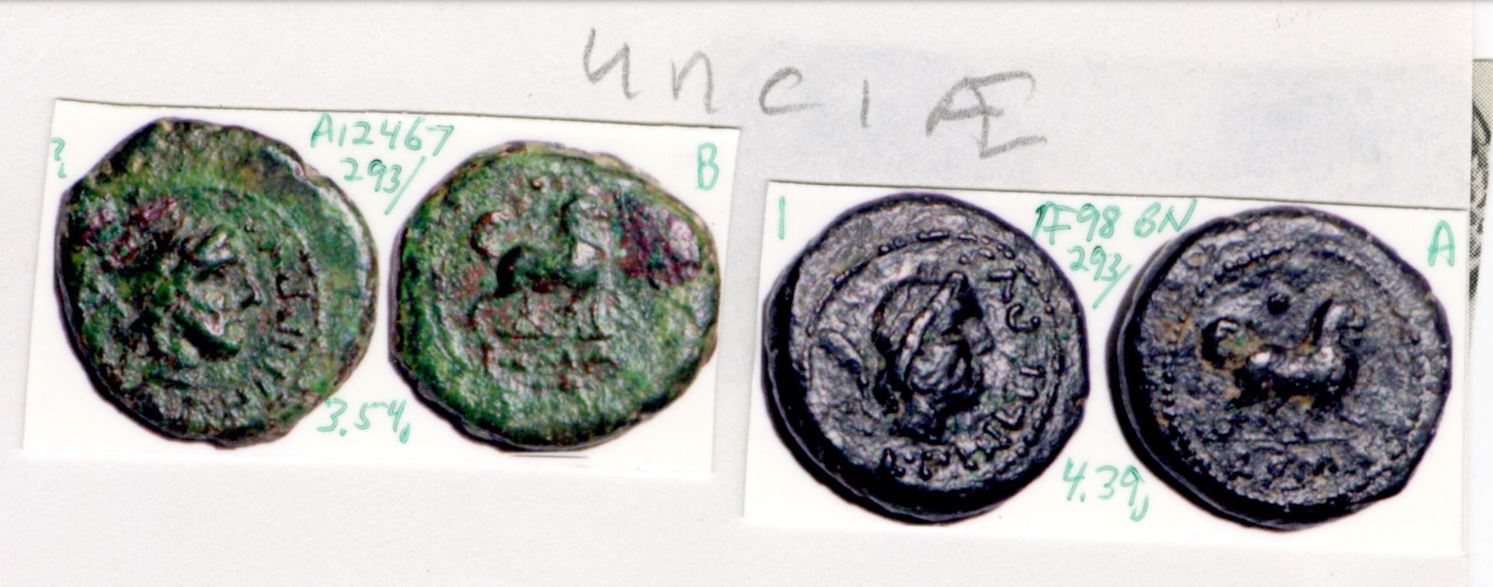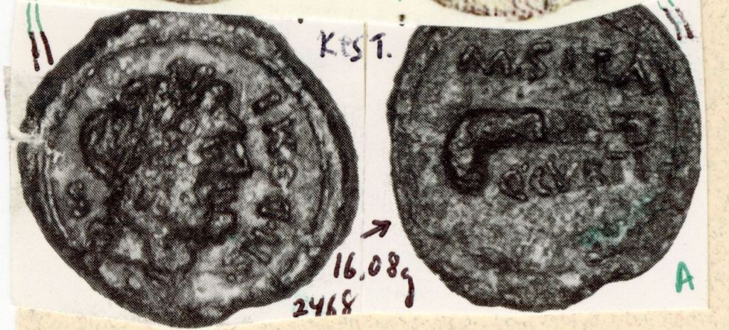 In the interests of completeness I should also mention that there is this other early coin with Saturn not as an obverse type but as a reverse type. If I’m right, the tool in the hand should be be the toothed one, not the Perseus-style harpa, but frankly I’ve not yet seen one clear enough in that detail to say it looks like much of anything specific: