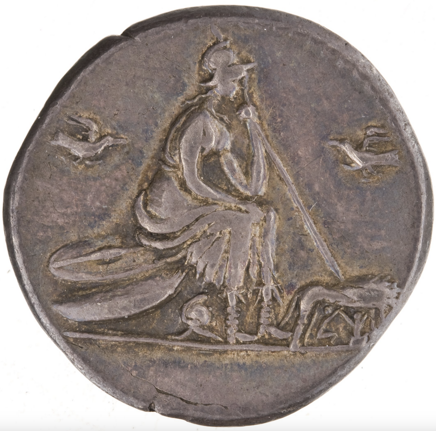 Anyway. Where does this Amazon-on-a-Pile-of-Arms Type show up on Roman coins? All over!
