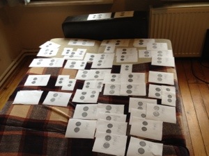 Yesterday, I decided I couldn’t see the shape of the chapter. So I moved off the computer and started sorting. 57 coins later I’ve got a pretty good sense of the intersections, but the linear narrative isn’t there yet. In the process I found a secondary topic that is just itching for independent publication as a ‘note’ somewhere. SDA had me dictate a draft of that piece to him first thing this morning so after the chapter is done I have something substantial to come back to. It was our second dictation attempt. The first was for a book review. The idea is to get more words on paper quicker with less fretting. So far so good. Okay back to my scraps of paper.