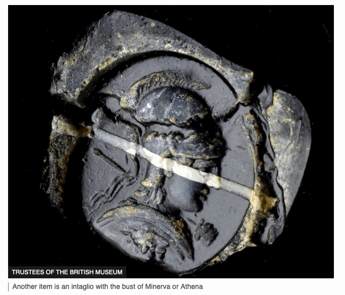 Notice the emphasis put on rendering Roma’s hand clutching the spear before the shield. Also notice the variation in shield designs.