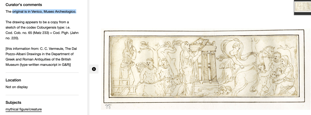 I found it while searching for more information about Hyginus, and was delighted to find the “Berlin glass paste” showing Kleobis and Biton (as well as the “Catana Boys”, about whom I was dismally ignorant).