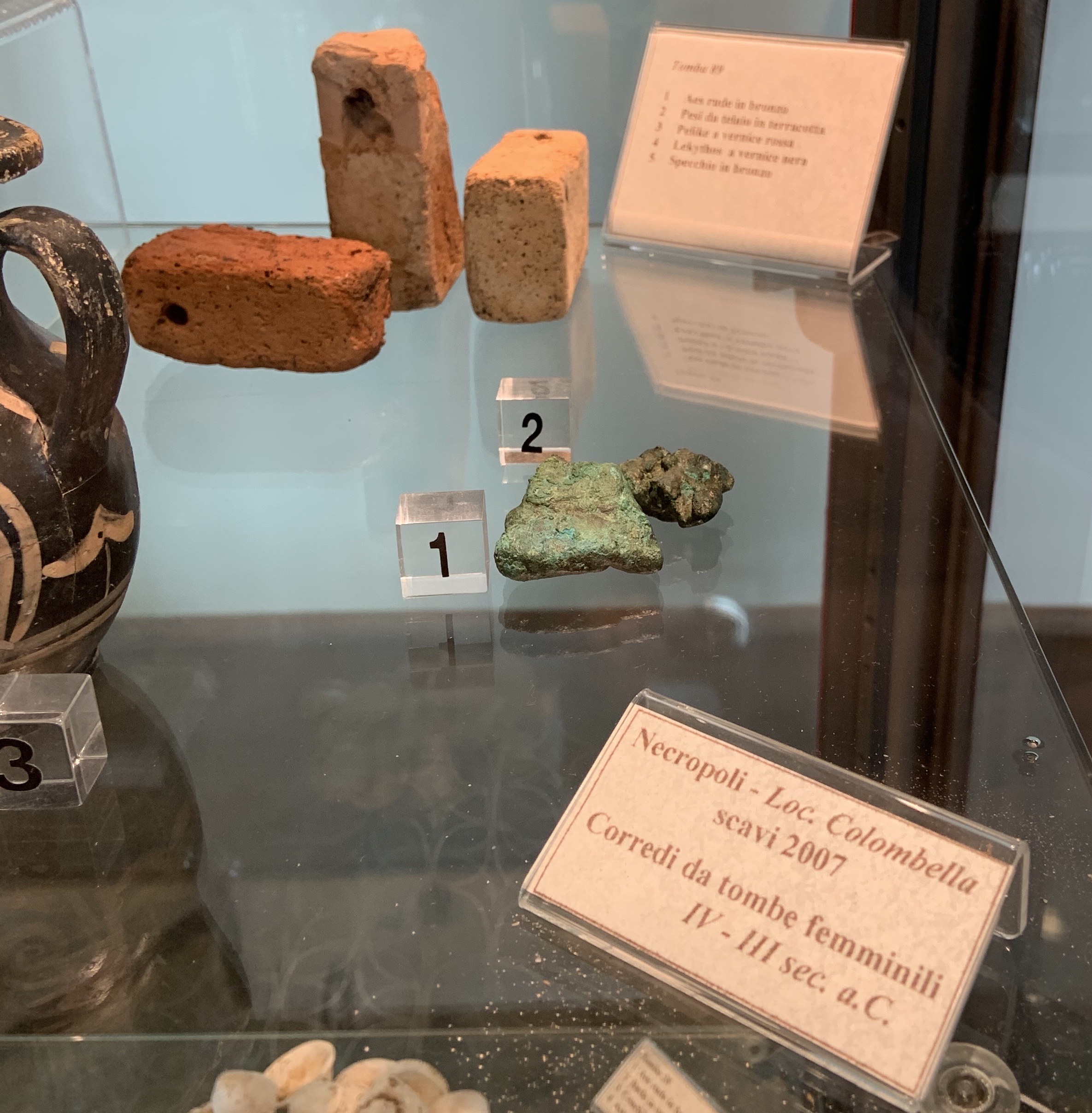 It seems that these aes grave may also be from funerary contexts as they were unearthed in the same Colombella excavations. – private correspondence with the excavator suggests the aes grave was NOT from a burial context.