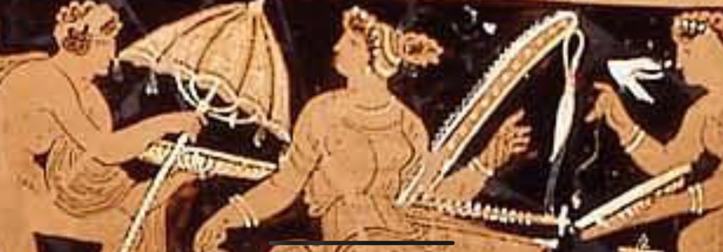 “Floor pavement representing female dancers. Marble mosaic, ca. 260 AD (Sasanian Era). From the iwan of the so-called palace of Shapur at Bishapur, Iran.”