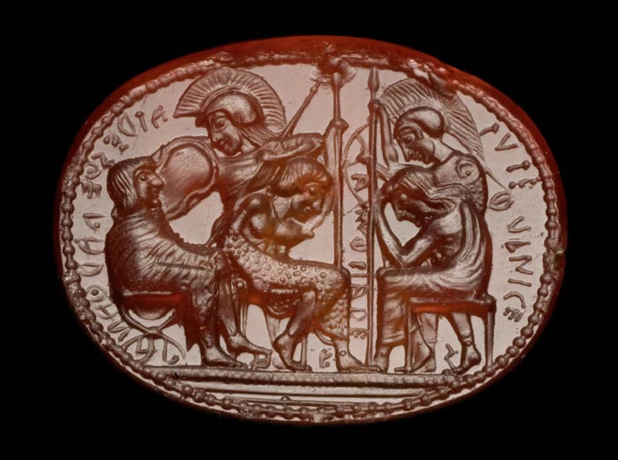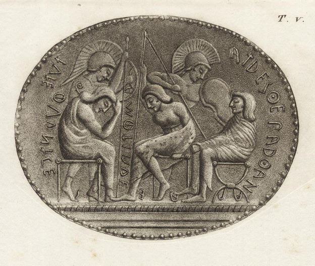 Arachne entry: “”So-called. “Stosch’sche Gemme”: five heroes of the “Seven against Thebes” hold a council”