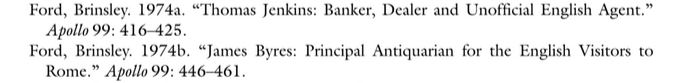 He is also mentioned in LANZI, Notizie, 56, [another ref.] as the owner of an Etruscan patera. Byres was also preparing a description of the paintings of an Etruscan hypogeum of Tarquinia with copper plates. For information on him see HAWCROFT 1988, passim: he was in Rome from 1756, at first as a painter with interests also in the field of architecture, but since the mid-1760s he was active especially as a merchant and guide. He participated in important affairs, such as the sale of what is now called the Portland vase to Sir W. Hamilton and the Seven Sacraments of Poussin to the Duke of Rutland. He was one of the first visitors to Paestum in 1766 and left Rome in 1790. See also JENKINS SLOAN 1996, 196, for an onyx cameo with bacchanal, which he sold to Lord Fortrose, Seaforth, before 1781. Byres also acted as an agent on the commission for the altarpiece that Mengs was to have made for All Souls College, Oxford (see ROETTGEN 1993, 30). On Byres see also SKINNER 1966, esp. 16-17, FORD 1974 and STAINTON 1974” (a cleaned up machine translation)