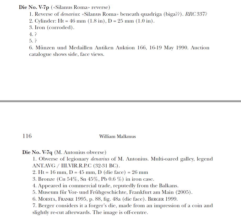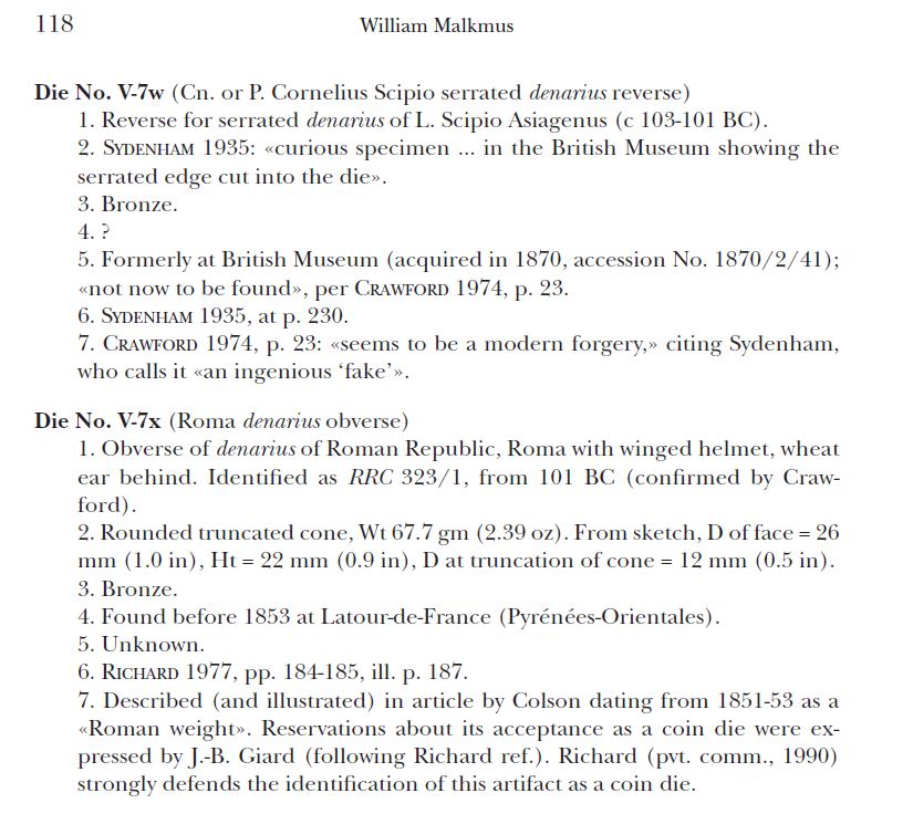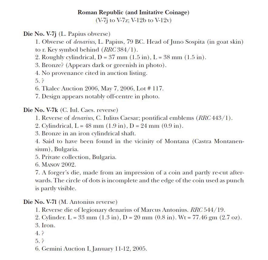Here I reproduce his list of known Republican dies for ease of future reference: