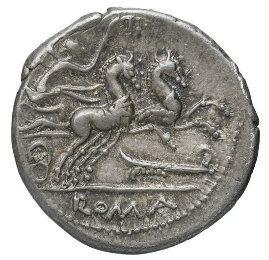 Normally I might say the rudder was an attribute of Fortuna and leave it at that, but the weird thing is that’s not really how it seems to be used on the republican coin series. Most instances where we can tell what its doing suggest that we should see it as a claim to dominion over the seas. Given that the same symbol appears on the reverse as a secondary symbol of the denarius of this issue, we should probably assume that the symbol has meaning to the moneyer and his family, ditto probably Hercules. The main take away is that the uncia is the place the moneyer feels comfortable breaking with tradition even as he chooses as super conservative denarius type (Roma/Victory). This is his little bit of difference.