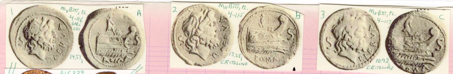 Ok so I can only assume that these are the same coin and that some one did a hell of a a cleaning job on it and turned a fantastic profit. While removing a good .1 grams of material from the specimen. I grant you the cleaned up one is prettier… If I’m wrong, do tell me! Now what weight do I put on my spreadsheet?! grrr…. decisions. I’ll put 3.96 and call it done. Apollo shows up more and more on coins in the late republic and perhaps was taking on greater significance for the state or even being favored by those elite with a particular view of how Rome should work. (There are some earlier blog posts about this: one, another, yet another ) I’ll have to talk about this in what ever comes of this survey of the small change.