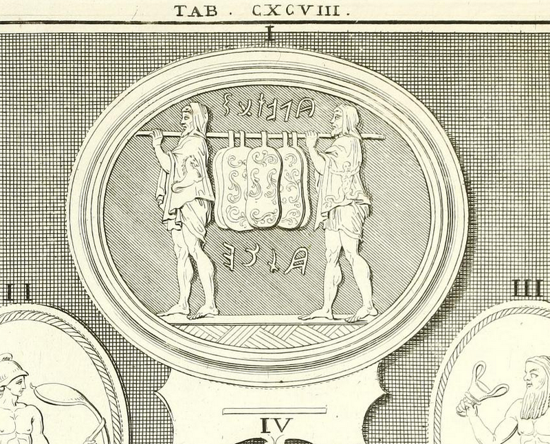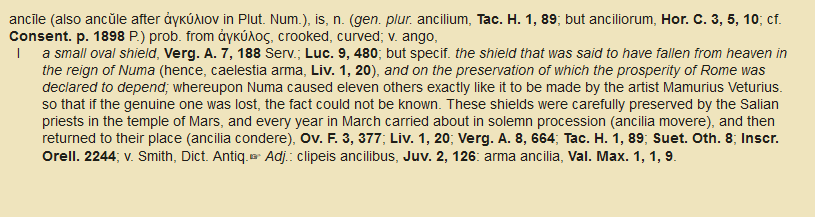 Colonna, Giovanni. “Gli scudi bilobati dell’Italia centrale e l’ancile dei Salii.” Archeologia classica 43 (1991): 55-122. It is gloriously illustrated. JSTOR link