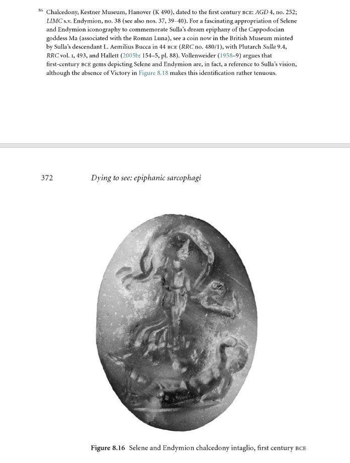This is just a small selection of the frequency of the appearance of Victory in these scenes with Endymion. While (thus far) I’ve not found a literary role for Victory/Nike in the narrative most ancient artists clearly found her an essential component. Thus RRC 480/1 should be identified as Luna and Endymion NOT the dream of Sulla.