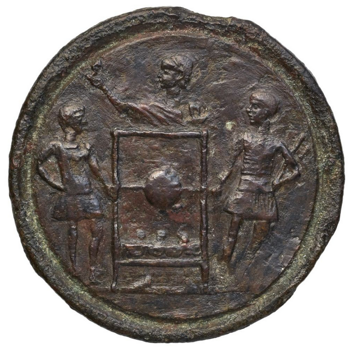 It took me the better half of forever to find the right comparative image but I did it and I regret not a moment spent trolling contorniates. (a good blog post about them in French)