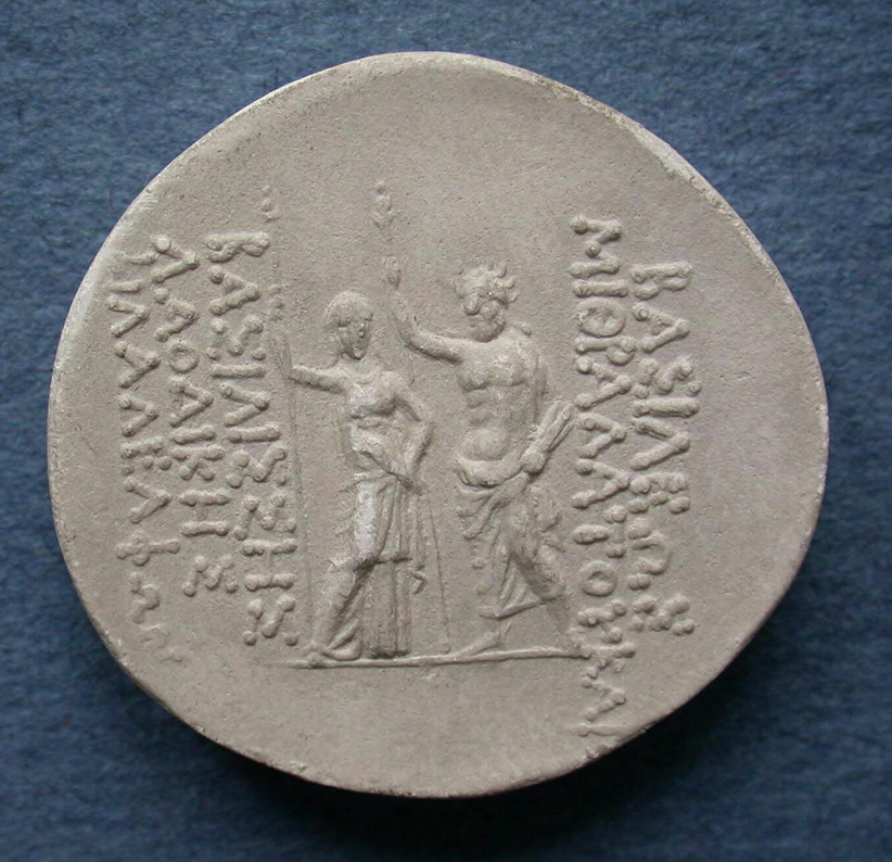 The type assimilates the identities of Queen (Basilisse) Laodice and King Mithridates (Philopator) with Zeus and Hera and identifies them as Philadephon. Sibling Lovers. Emulating the Ptolemies and with a heavy nod to the same logics as Theocritus Idylls 17 justifying the sibling marriage among Hellenistic royalty based on the Olympic precedent.