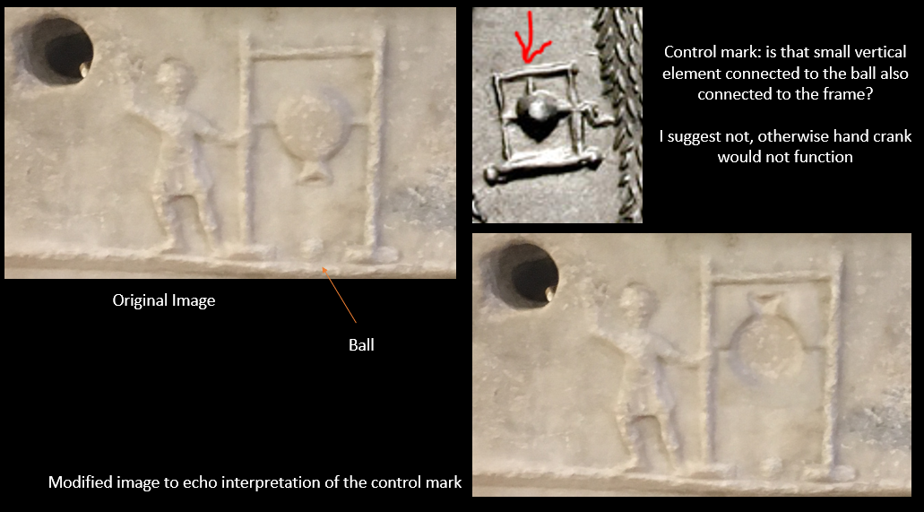 If the little sticky out thing at the top is part of the ball not part of the frame and not connecting the two, then it might be the box that catches and releases the random ball. That’s a lot of ifs and by no means certain, but until we find an actual archaeological match for the symbol this is the best I’ve got so far.