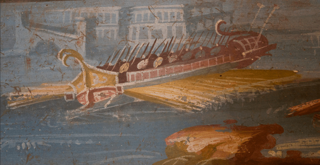 Notice the while ‘sticks’ coming out from the stern. These made me think of the filleted scepter on Antony’s coinage:
