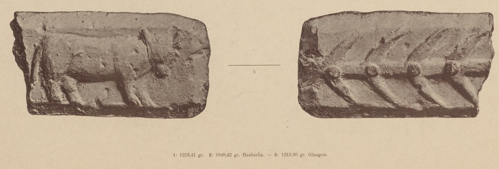 I guess my question is if this bar has been known for so long is it more likely to be authentic rather than a misguided replica…. When does the fake trade in aes grave really get going historically…?