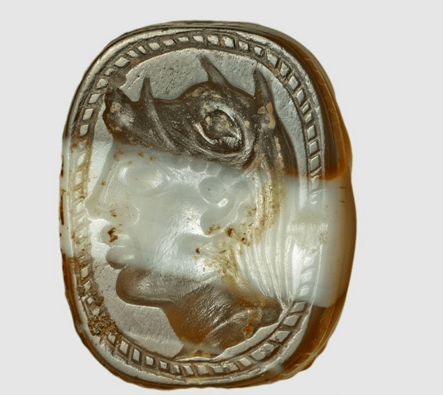 I feel very confident that this intaglio depicts Nethuns wearing a ketos (sea serpent) headdress.