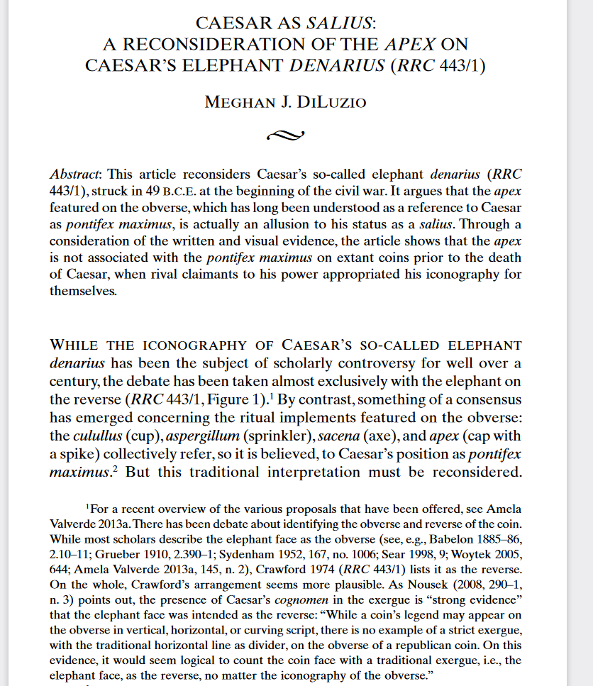 I do like an apex (earlier posts) and I’ve argued that the Minucius coins show a pontifex maximus who is chiefly identified by a knife and patera (no apex) (article).