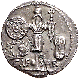 LO! Update 10/26/21: Notice the dagger/sword/knife/blade with a cross on top on this trophy on a Quinarius of Caesar: