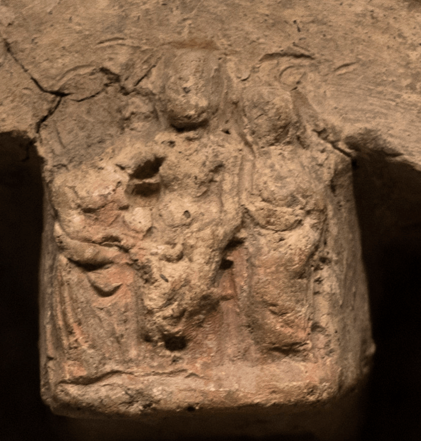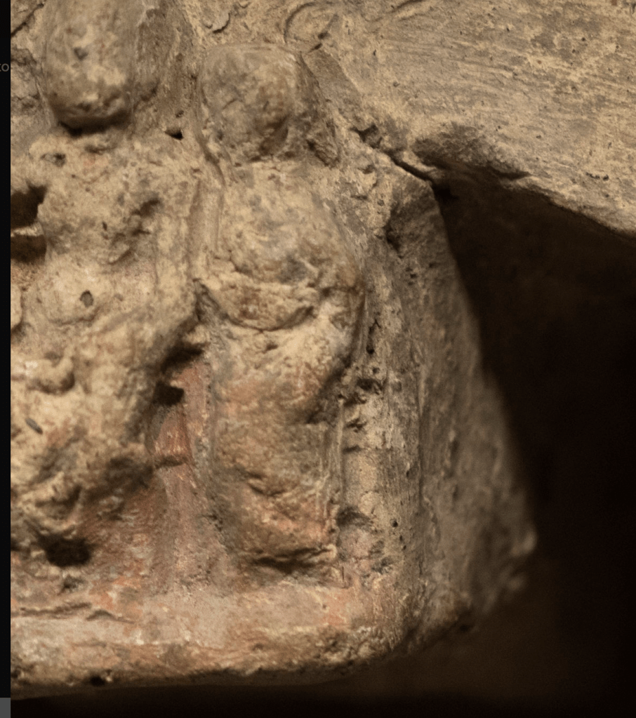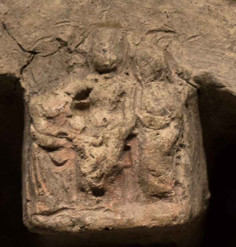 Dan’s photos are always SO good! If you go to his photo stream he has a few more of this same object from different angles. The detail I wanted to record other than just the existence of this object and its location is the center image, which to my eye in this photo looks like three seated women and I’d be tempted to read as a representation of the cult image.