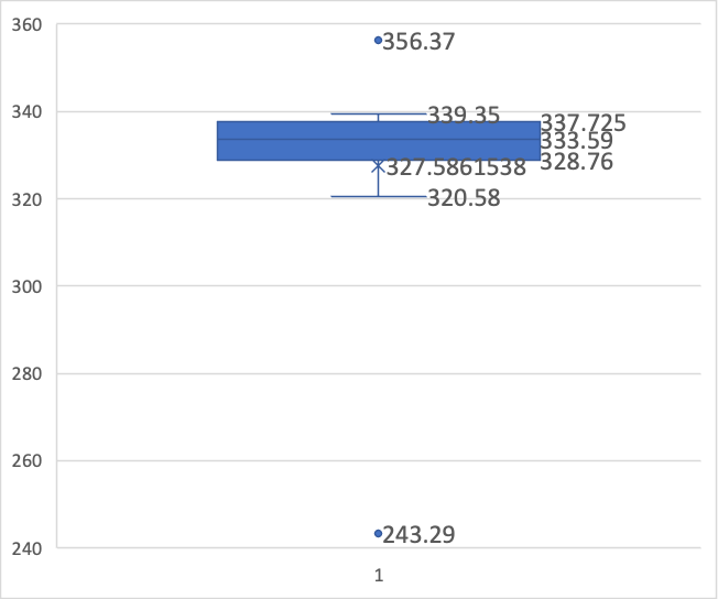 Luckily “past me” had ordered Burnett 1991, so I found a pdf on file. I was interested in the idea that the fractions might be on a different weight standard than the whole unit. I’ve not looked at the fractional weights but I thought I’d see if I could re look at the data and include any specimens not known to Haeberlin (his plates). I only found one in trade and the one illustrated above in the ANS. I’ve found none in: Oxford, Yale, Princeton, Cambridge, Michigan, Capitoline, IKMK (I’ve not checked my Copenhagen or Glasgow image files yet). With only 13 specimens no average or median is going to be very conclusive, but a box and whiskers gives some idea of shape of the data. A close cluster with relatively short whiskers and two extreme outliers.