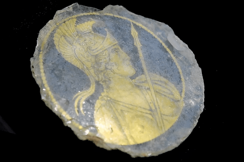 This gold and glass representation was found during the building of the line C subway in Rome and now widely reported in the news.