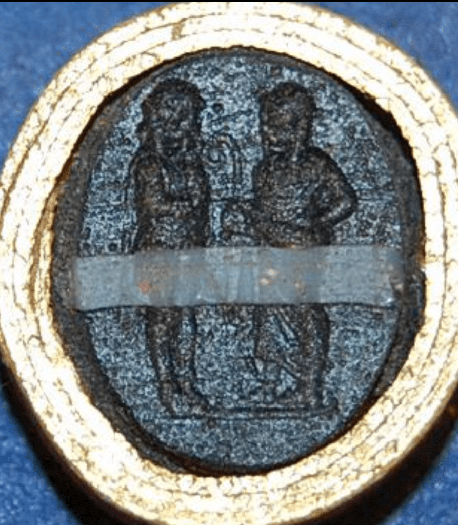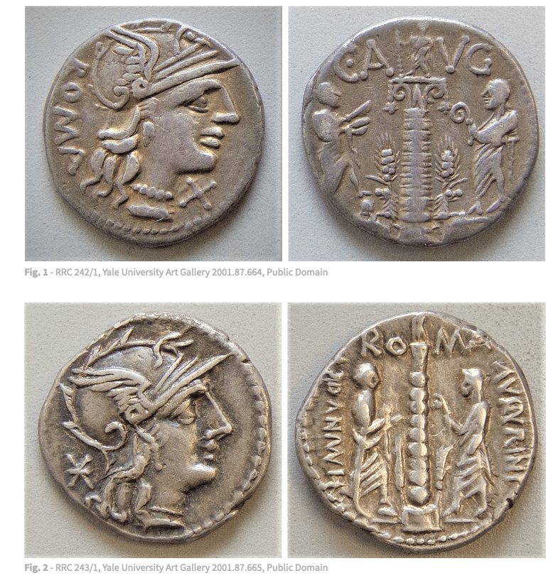 This one below is so similar and yet the lituus has become a scepter and the right hand man doesn’t appear to have his hair covered.