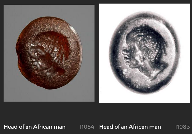 There is a chicken and egg problem here. Did the coins inspire the intaglios? Did the intaglios inspire the coin type? Is there a third iconographic influence on both designs were now missing? Is this like the images of the defeated enemy I’ve discussed with regard to the use of Gallic heads on Caesar’s coins and also on glass pastes or even images of Mithridates?