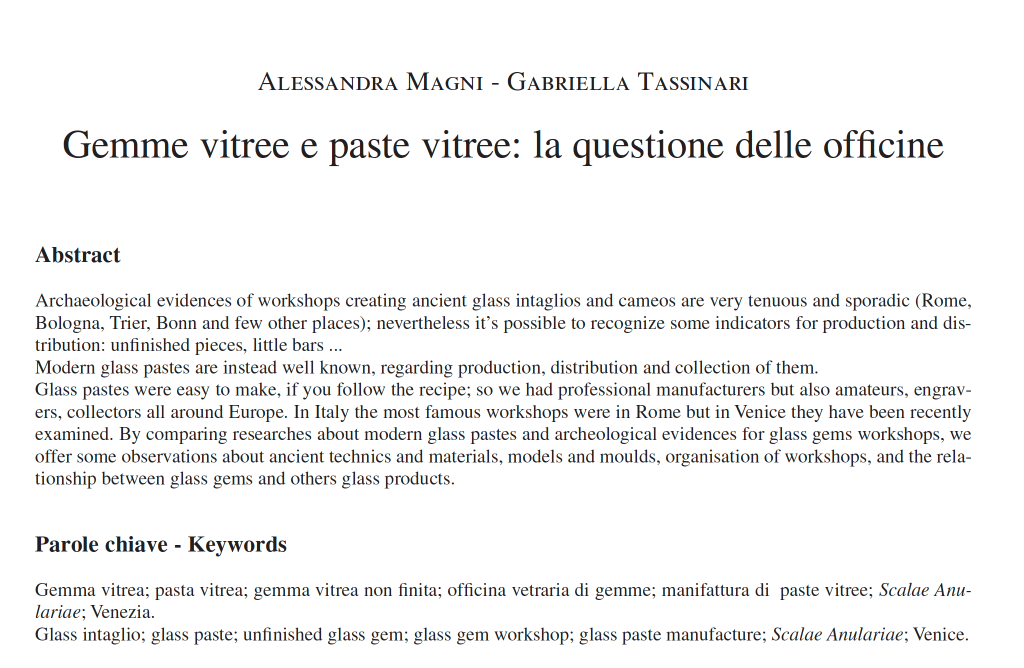Alessandra Magni and Gabriella Tassiniari treat a very wide chronological range. The piece is beautifully illustrated and the real highlight for me are the unpublished ancient specimens from Verona.