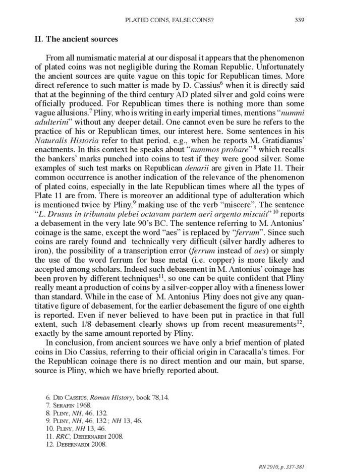 Debernardi Pierluigi. Plated coins, false coins?. In: Revue numismatique, 6e série – Tome 166, année 2010 pp. 337-381. DOI : https://doi.org/10.3406/numi.2010.2941