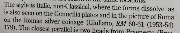 Update 5-3-23: Giuliano 1953 finally arrived with images in my ILL inbox! These are the coin obverses he uses to illustrate this Italic style he sees as in parallel to the busts.