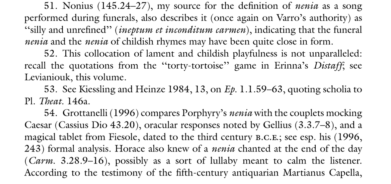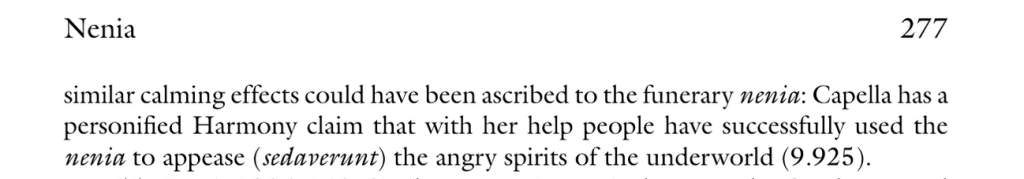 But her concern is on the more common use of term Nenia, i.e. in its funerary context: