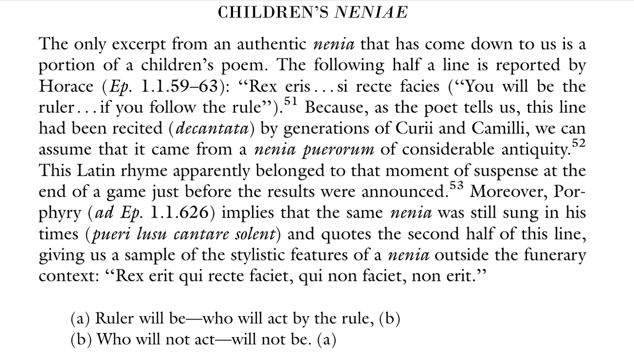 Why do I care? Well I’m including the little rhyme in my transition between chapter one and two of my current book project. The first chapter “What sort of thing is a king?” investigates literary generalities about the nature of Roman and Foreign Kings and Roman relationships to kings, again in generalities and truisms not specific examples.