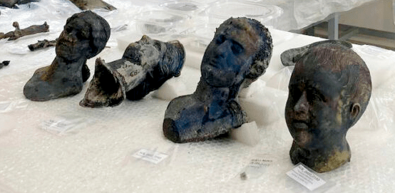 Like so much else the San Casciano find will change how we study and think about almost everything visual from Roman Republican Italy. I collected more images of the portrait heads below (these are just heads, they were never attached to bodies). They are inscribed on the necks by the individuals who commissioned the images and dedicated them. Prior to these discoveries our best evidence for such portraits were coins and gems and those mostly from the end of the first century BCE, whereas these new finds are 2nd Century BCE or earlier. They show what bullae and other occasional evidence have long suggested, Roman portrait styles were distinctive, stable, advanced, and well developed long before their appearance on coinage.