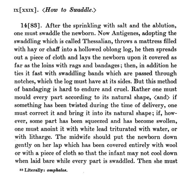 I also learned in the workshop that we have ancient swaddling directions from Soranus:
