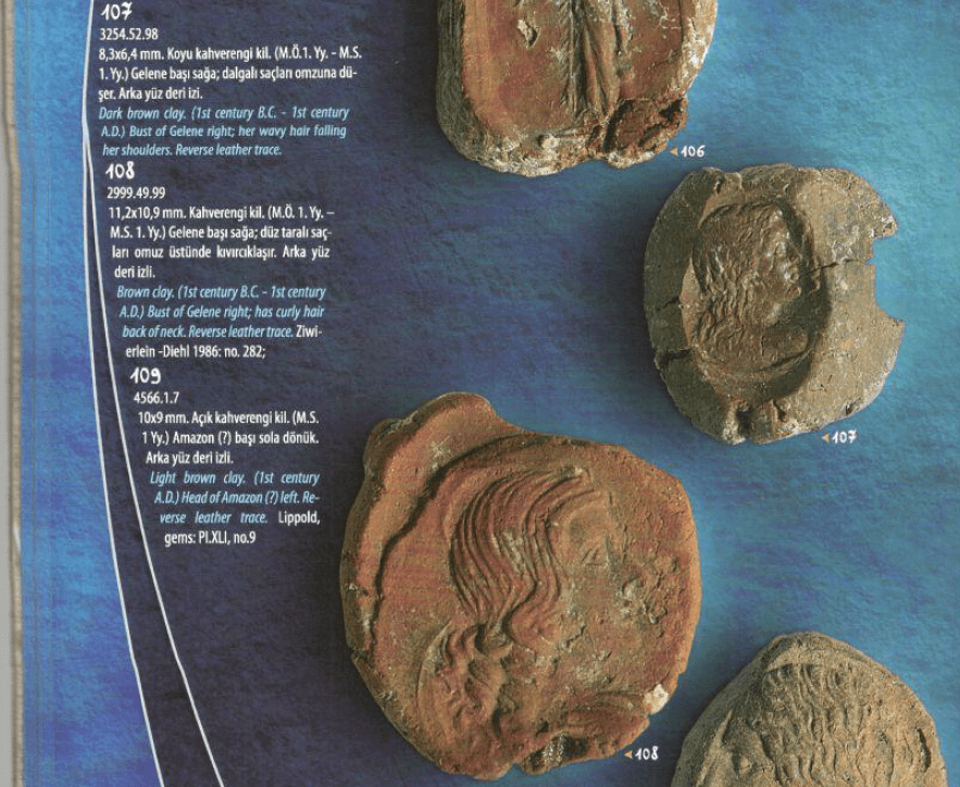 “65,000 bullae (seal imprints) were found in the archive room (Picture 11). This number is, to the best of our knowledge, the largest figure ever found in scientific excavations. As a result of this the Gaziantep Museum has the world’s largest bulla collection. Bullae are made of clay. Clay fabric ranges from brown, black, reddish, gray to bluish in color. The forms are triangular, smooth or those forced into an approximately circular shape. The Belkis bullae are generally made from the impression of a stamped seal and ring stone. Those from embossed rings and engraved stones are numerous. Bulla sizes range between 3-30 mm. The large ones (15-30 mm) often depict the head of the Roman Emperor Augustus. Bullae were formed by squeezing the negative image on the clay to create a positive image, as a result of the stamping of seal and ring tags with a description, name or sign. Bullae were used on official and private papyrus, wooden tablets and wax tablets, money bags, packaging such as postal service items, food and beverage containers, wooden boxes, room doors where valuable goods are found, customs goods, documents of inheritance and waivers. As a result of the stamping the seal on the clay attached to these type of goods, the seal and the pictures on the ring stone appeared on the clay dough. These seals were likely preserved in the archives as proof of receipt of postal items or accessing of materials. The stamped prints reveal the density of this city in trade and communication. This is also proof that there is a customs gate here.”