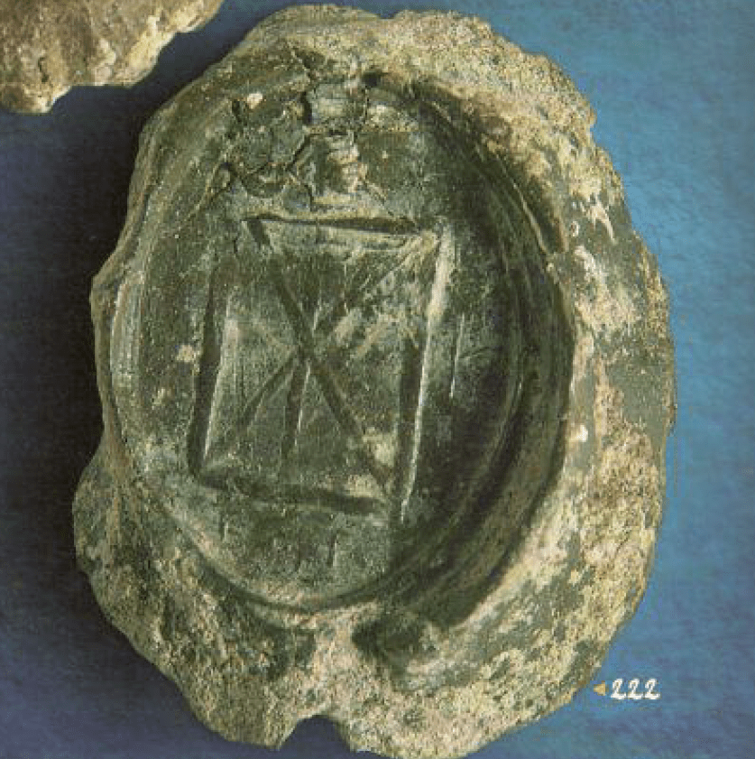 The symbol on right hand side of the reverse of RRC 513 (aureus and denarius; older post on this type) has been interpreted as a military honor, but the parallels are not definite. Crawford calls it “phalerae (dona militaria)”. Hence my interest in this sealing from Zeugma published by Mehmet Önal: