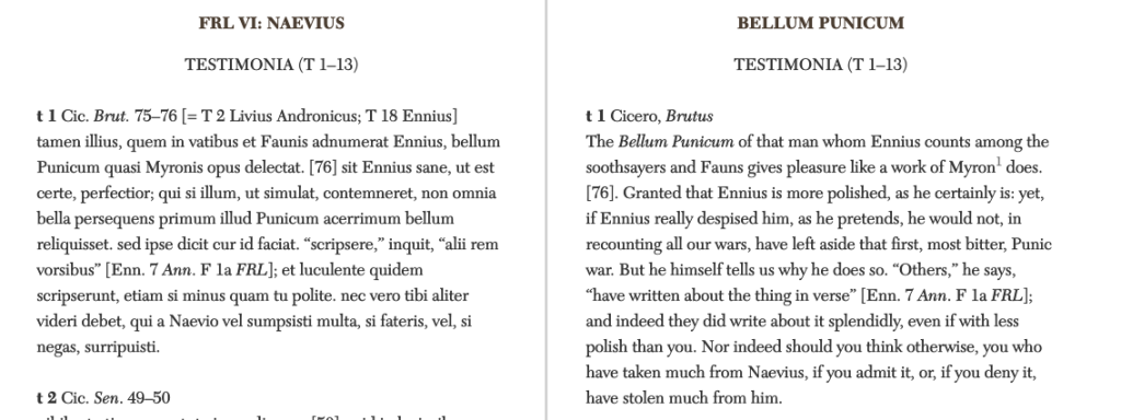 This is just a note to myself. I’ve been interested in the culture of quotation in antiquity. See my piece on Diodorus Fragments (PDF link). In a forthcoming piece on Dionysius I think about his relationship to Polybius. This bit of Cicero on Ennius and Naevius reminds me a great deal of that relationship. I want to come back to this…