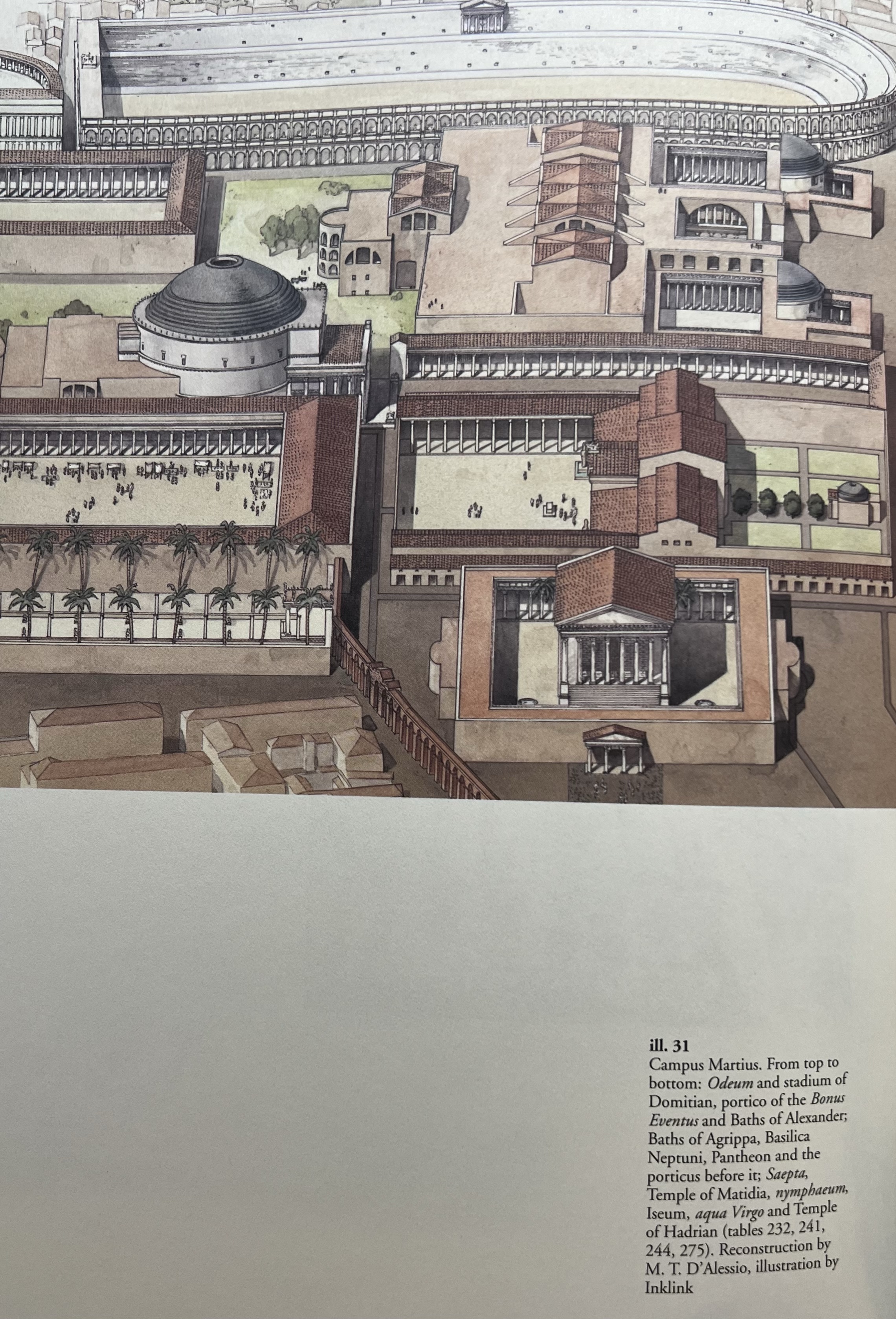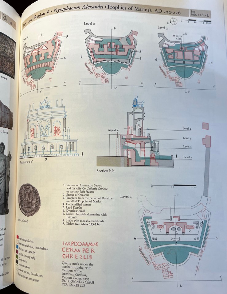 It is the big roofed building behind the Pantheon below Domitian’s stadium (= Piazza Navona), what was before Sev Alex got to it had been the baths of Nero. This causes confusion for the association of artifacts with Nero or Alex. And there are some impressive ones!