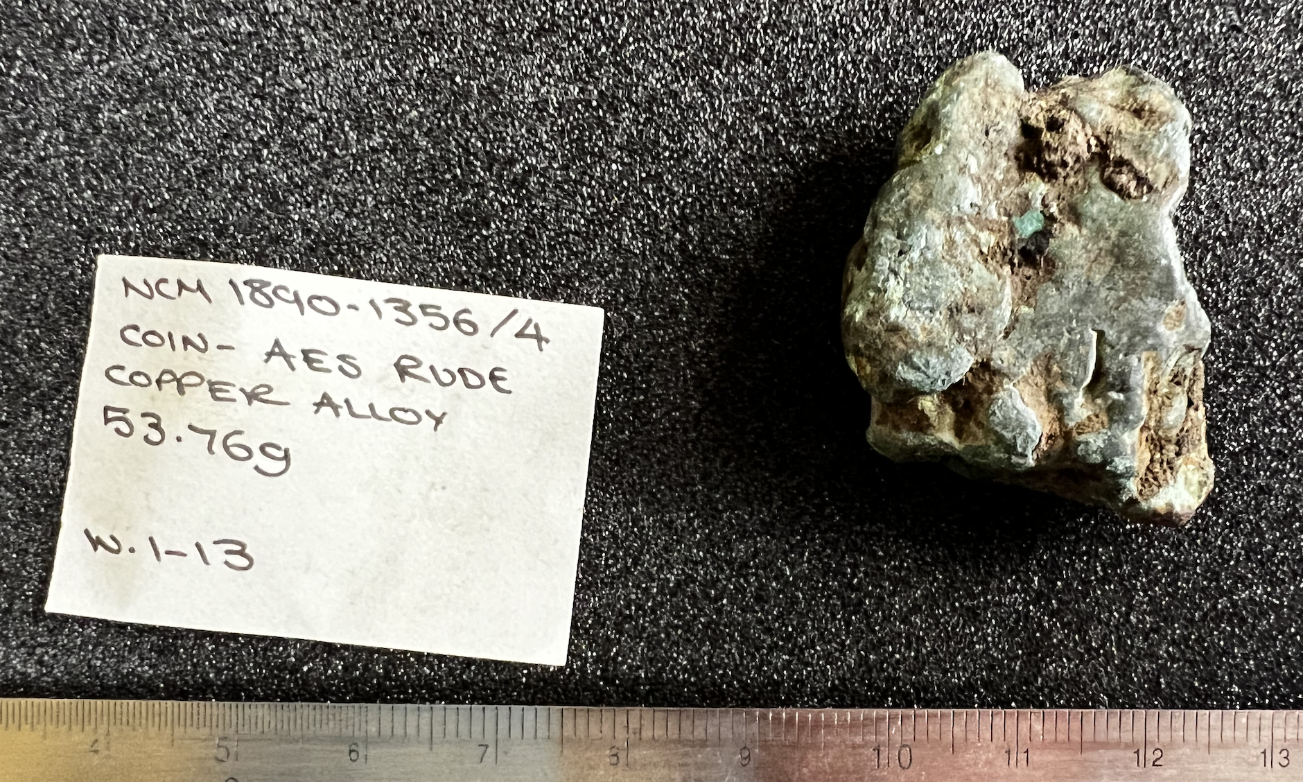 The Nemi aes rude all looks much the same. There was no way to sort it visually. Crawford didn’t distinguish different types in his catalogue back in the 1980s and neither I nor my archaeo-metallurgist colleague specializing in bronze could visually distinguish specimens. Yes they all weighed different amounts 19.23g to 211.10g, but other than that they all seemed to be of the same fabric.