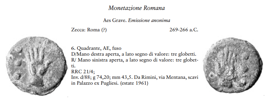 Ariminum is a Roman foundation of 268 BCE. According to another publication (below), there is also said to have been found in Rimini an RRC 18/1 and also in their collection RRC 18/4 and 18/5, suggesting they were also found in the area.