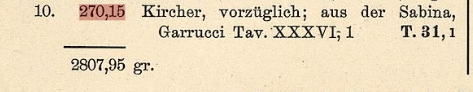 1. N.B. The collection in the Hirsch 34, 1914 sale I know is from the *Garrucci * collection. The citations to Kircher by Garrucci in his 1885 catalogue do not necessarily mean that they were from the Kircher collection, but that there was a similar example or were similar examples in the Kircher collection. E.g. Hirsch lot 610 is from the Garrucci collection, but this is not the Kircher piece which is now still in MNR (Cesano # 1375 = Haeberlin pl. 66, 9). All very confusing! Regards, iv