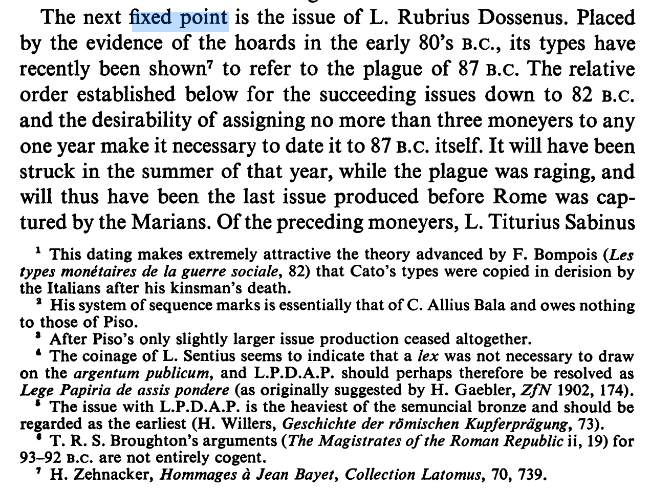Gruber also suggested that Dossenus might be in the same college as Cn. Cornelius Lentulus because they both made quinarii and because of what he saw as similarities in legend. I’m not sure this logic holds.