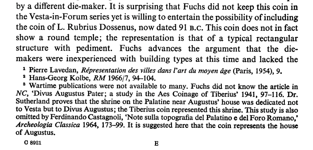 TRELL, BLUMA L. “Architectura Numismatica: Early Types: Greek, Roman, Oriental: An Extended Review of G. Fuchs, ‘Architekturdarstellungen Auf Römischen Münzen.’” The Numismatic Chronicle (1966-) 12 (1972): 45–59. http://www.jstor.org/stable/42666335.