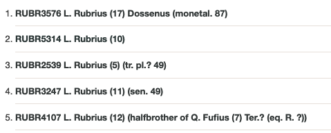 Gruber wanted to connect the Moneyer with the L. Rubrius mentioned as a Senator on the Pompeian Side at Corfinium in 49 by Caesar in BC 1.23. This seems unlikely. Recent prosopographical work keeps all the various L. Rubrii separate: