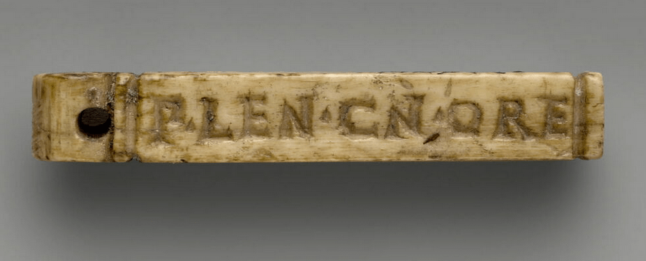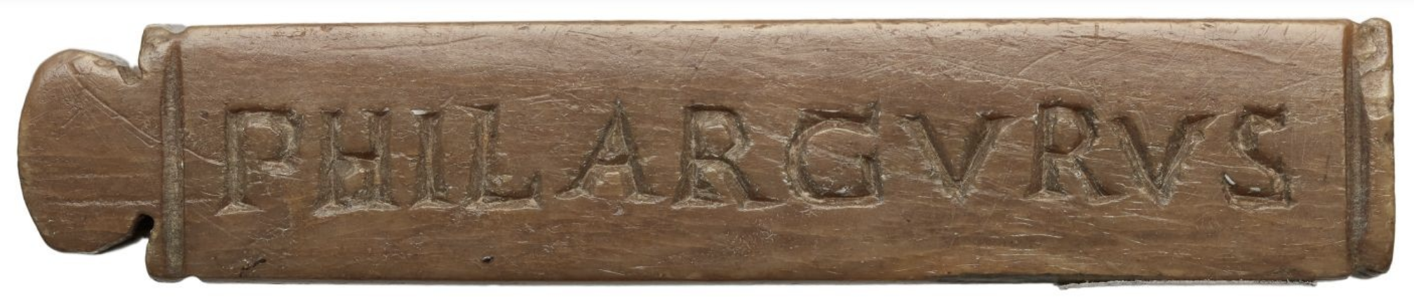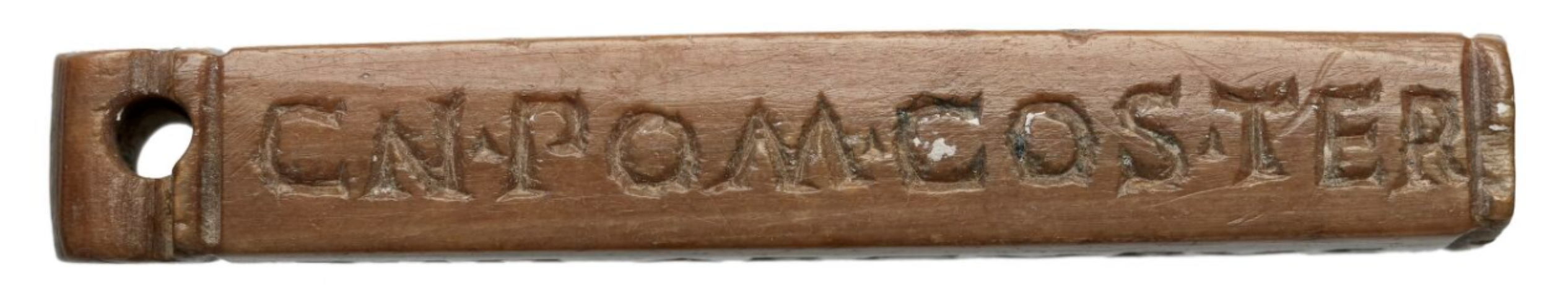 “Philargurus, enslaved by Aconius, inspected [this] one day before the Kalends of May, in the third [sole] consulship of Gnaeus Pompeius” (BnF)