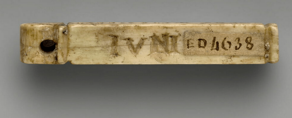” Philogenos, enslaved by Alfius, inspected [this] on the Ides of Sextilis, in the consulship of M. Antony and P. Dolabella.” (Louvre)