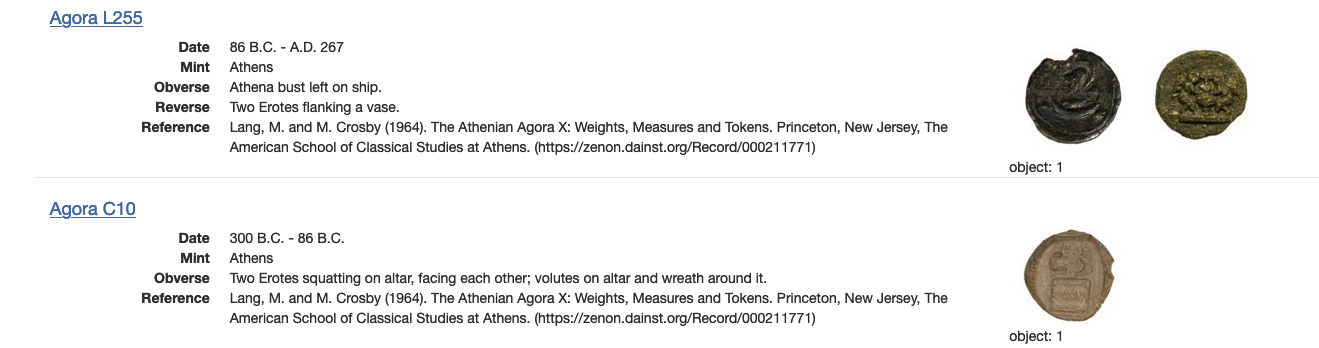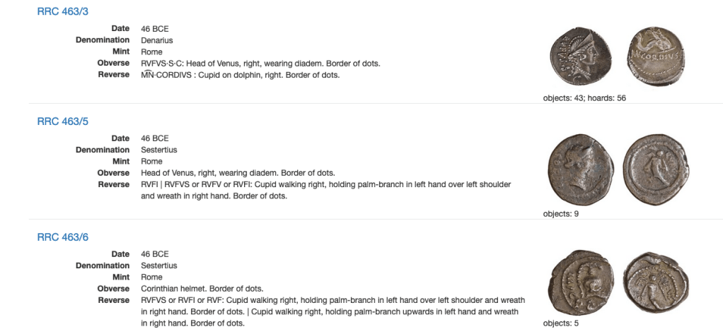 Must think more about what the cupids are doing on the reverse. We have lots of cupids doing stuff in mosaics from Pompeii in this general period. Numismatic examples of more than one cupid on the same design are rare. Thus far I’ve found just three tokens: